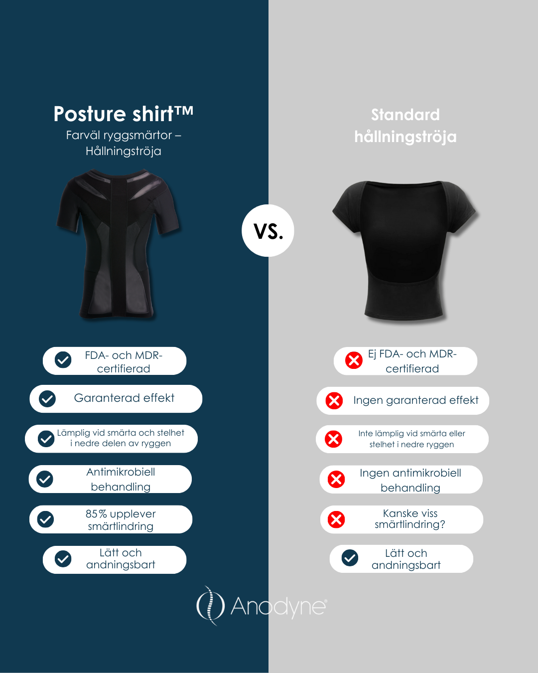 Om du vill förbättra din hållning är det viktigt att välja rätt lösning. Även om det finns många posture shirts på marknaden, är Anodyne™ Posture Shirt designad med fokus på effektivt stöd, hög komfort och överlägsen kvalitet.